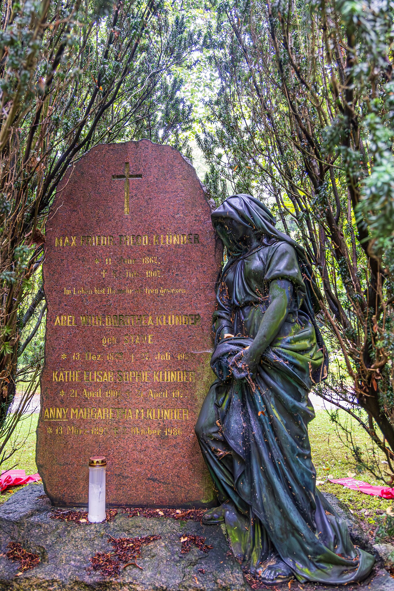 Meine Beobachtung zur Sepulkralkultur in Kiel: Skulpturen von Trauernden sind zum ganz überwiegenden Teil weiblich, ganz selten auch mal männlich. Bildnisse von Verstorbenen zeigen dagegen meistens Männer. Vermutlich wird das überall so sein, doch bin ich ganz gespannt auf deine Erkenntnisse.